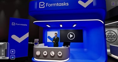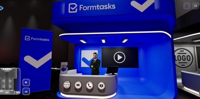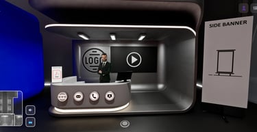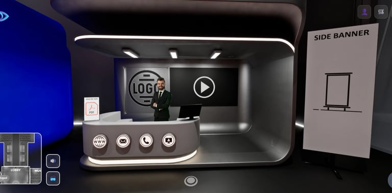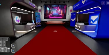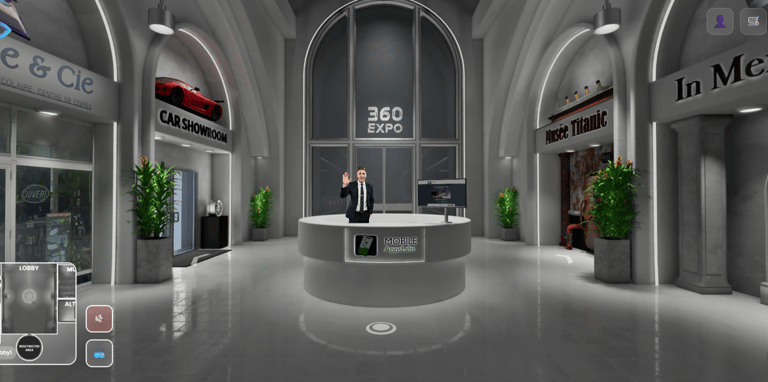 Dans cette phase du projet, j’ai conçu un espace polyvalent destiné à accueillir des kiosques d’exposition tout en permettant la tenue de conférences virtuelles au besoin.
