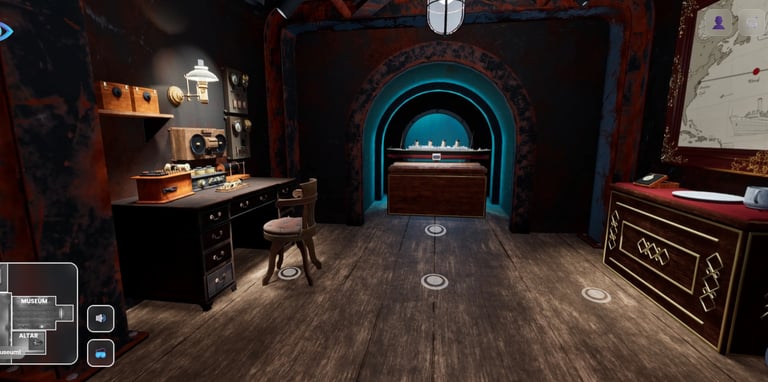 Une fois le concept validé, j’ai pris en charge la modélisation, la texturation et l’intégration des modèles 3D dans l’environnement, en veillant à maintenir une ambiance fidèle au contexte historique tout en soutenant l’expérience interactive.