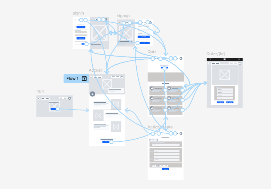 En étant responsable du design, j’ai commencé par créer un moodboard afin de définir une direction artistique cohérente : couleurs, ambiance, ton graphique et style typographique. J’ai ensuite réalisé des maquettes low-fi sur Figma pour poser la structure des pages, réfléchir à l’ergonomie et tester différents parcours utilisateur. Ces maquettes ont permis d’aligner toute l’équipe avant de passer à l’intégration front-end et au développement du prototype fonctionnel.