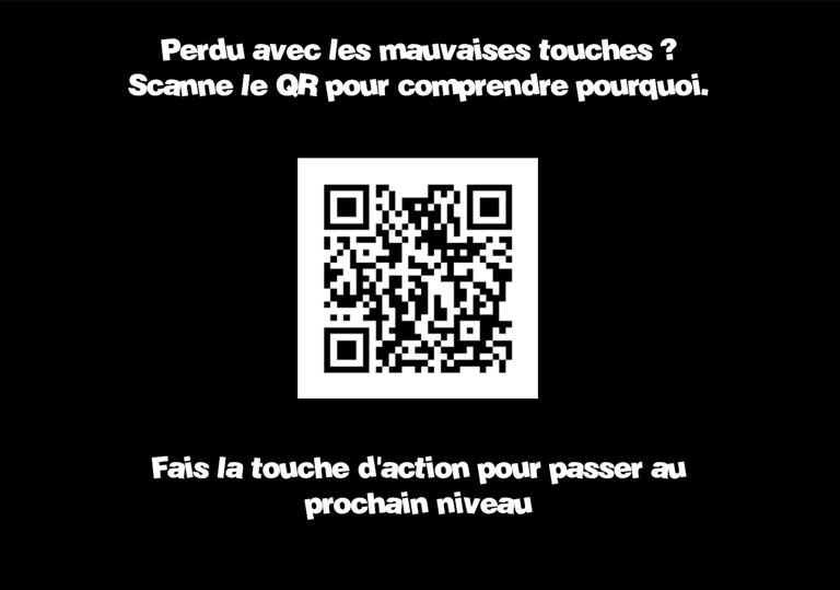Ce jeu a pour objectif de rendre l’apprentissage ludique. Afin de prolonger l’expérience et d’approfondir les notions abordées, chaque niveau propose aux joueurs de scanner un code QR à l’aide de leur téléphone. Celui-ci les redirige vers une page web présentant et expliquant les concepts de design liés au niveau complété.
