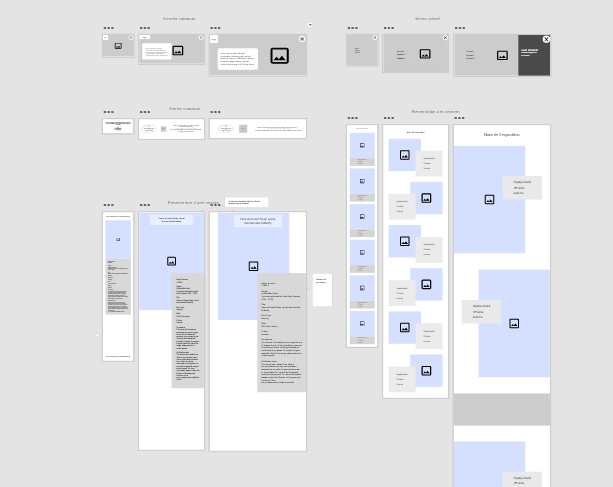 Étant responsable du visuel, j’ai dû créer un moodboard afin d’avoir une idée de la direction artistique que je souhaitais suivre et concevoir une maquette low-fi sur Figma.