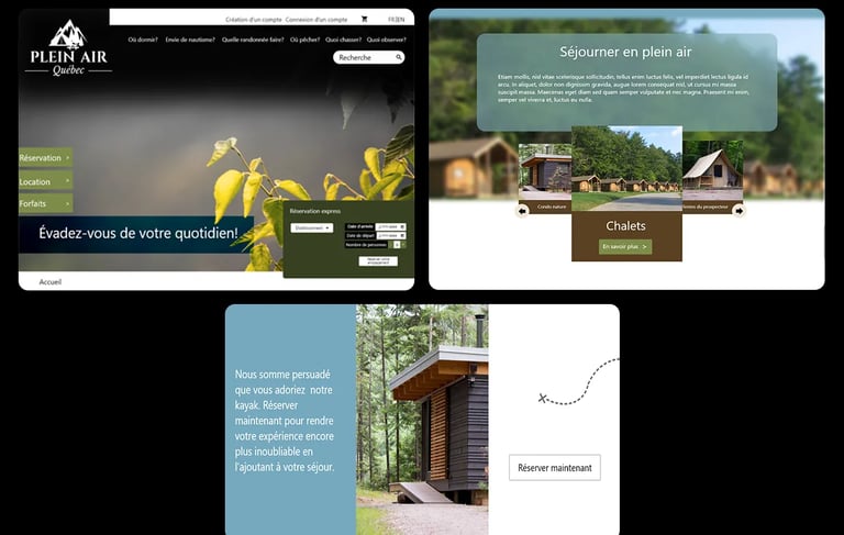 Le projet Plein Air Québec était le premier projet que je réalisais qui touchait plus profondément à l’univers du design UX. Le but du projet était de créer une maquette d'un prototype de site web pour un groupe fictif de parcs de plein air. C’était un projet scolaire qui avait pour objectif d’amener les élèves à faire un lien entre les demandes du client et les besoins des utilisateurs. La réalisation s’est faite en plusieurs étapes.
